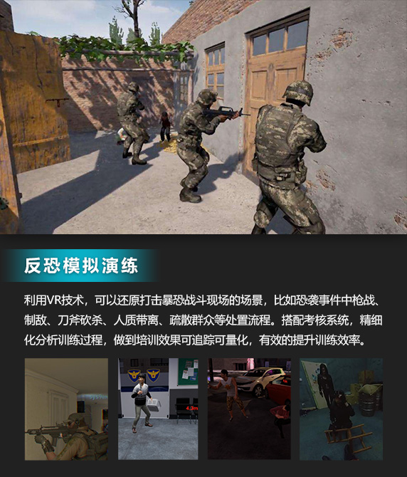 它结合了KATVR独有的万向行走技术和实时3D地形模拟技术,同时拥有实时3D地形模拟、环境事件模拟、无限万向行走等功能。具有提高训练效率,保证训练安全,沉浸感强等优点,使VR安全实训步入了新阶段。